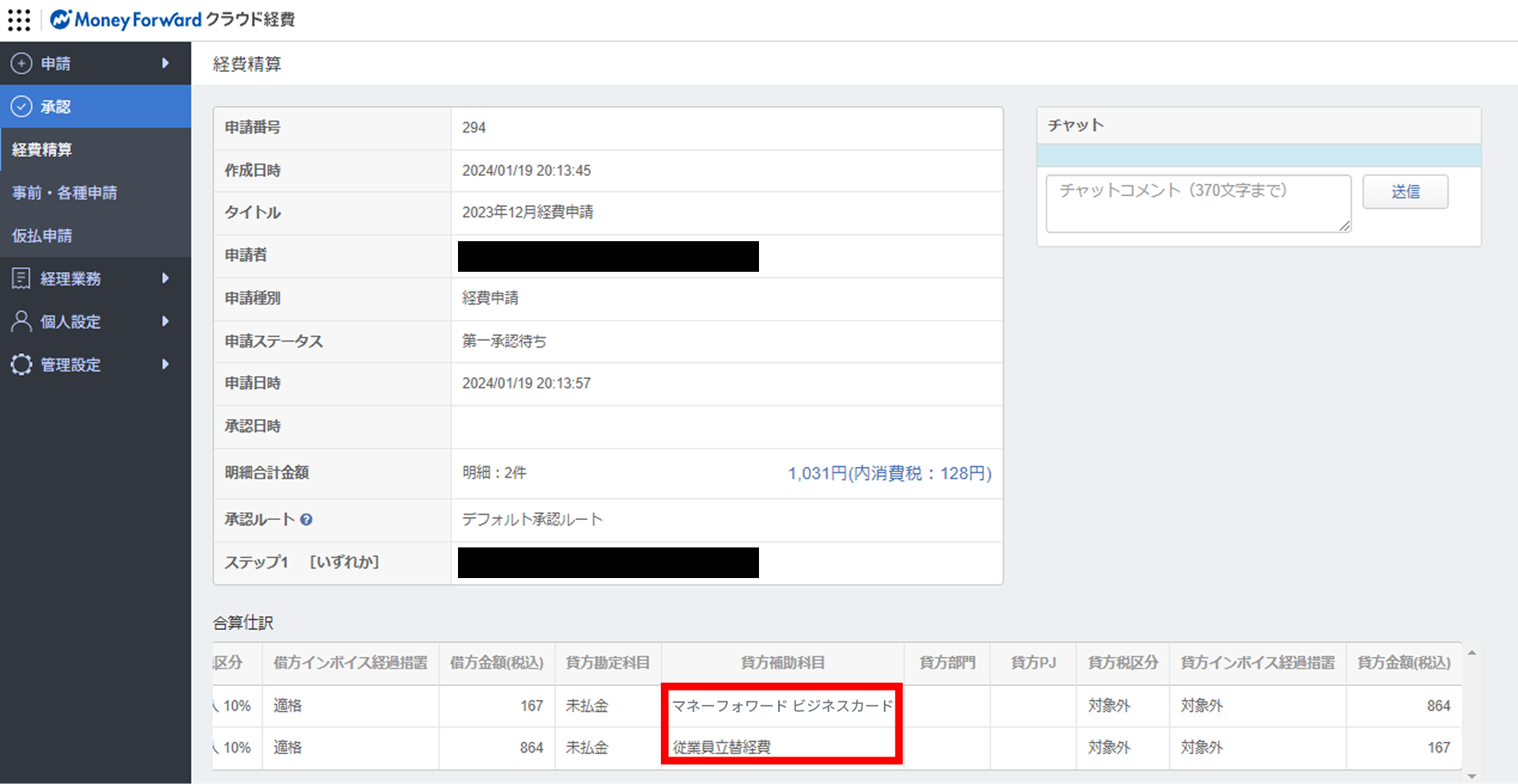 ※対象となる申請が多い場合は、承認日や部門、申請者の経費払戻口座の金融機関などで絞込検索が可能です