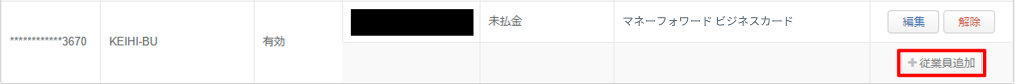 3.従業員との紐付けを行うカードの「+従業員追加」をクリック
