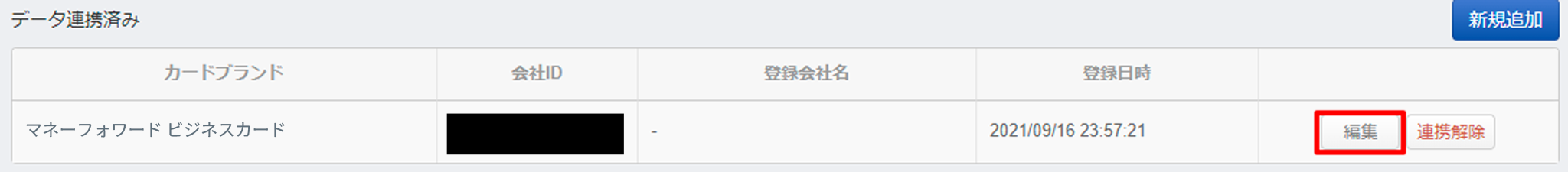 2.マネーフォワード ビジネスカードの「編集」をクリック